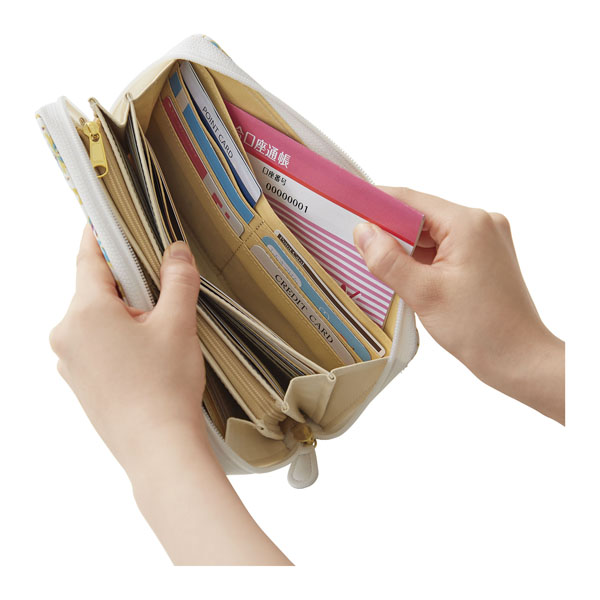 通帳も入る大きさ、コイン4分別の仕切付き、36枚以上のカードも入り大容量で便利な収納機能がもりだくさん!