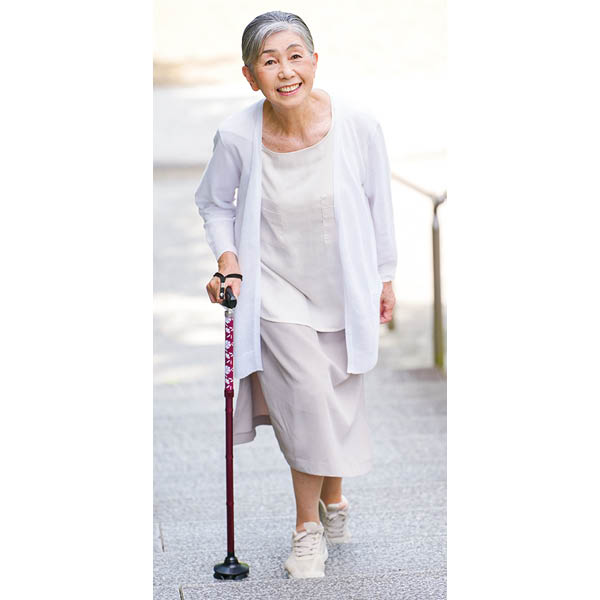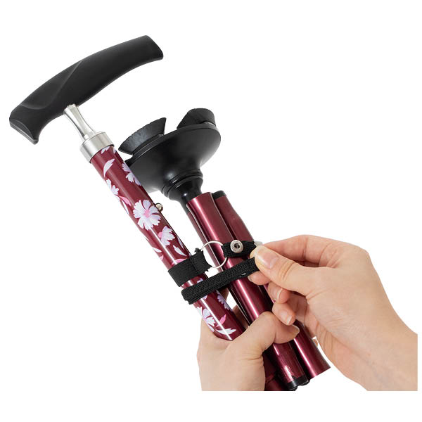 折りたためるあんしんステッキ ワイン(花柄)