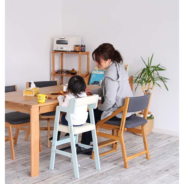 座面と足置きの高さが調整できるから、正しい姿勢を習慣づけます。