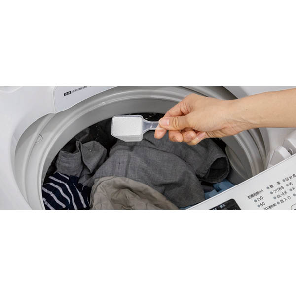 通常の洗剤に加えて洗濯機に入れると汚れがより落ちます。